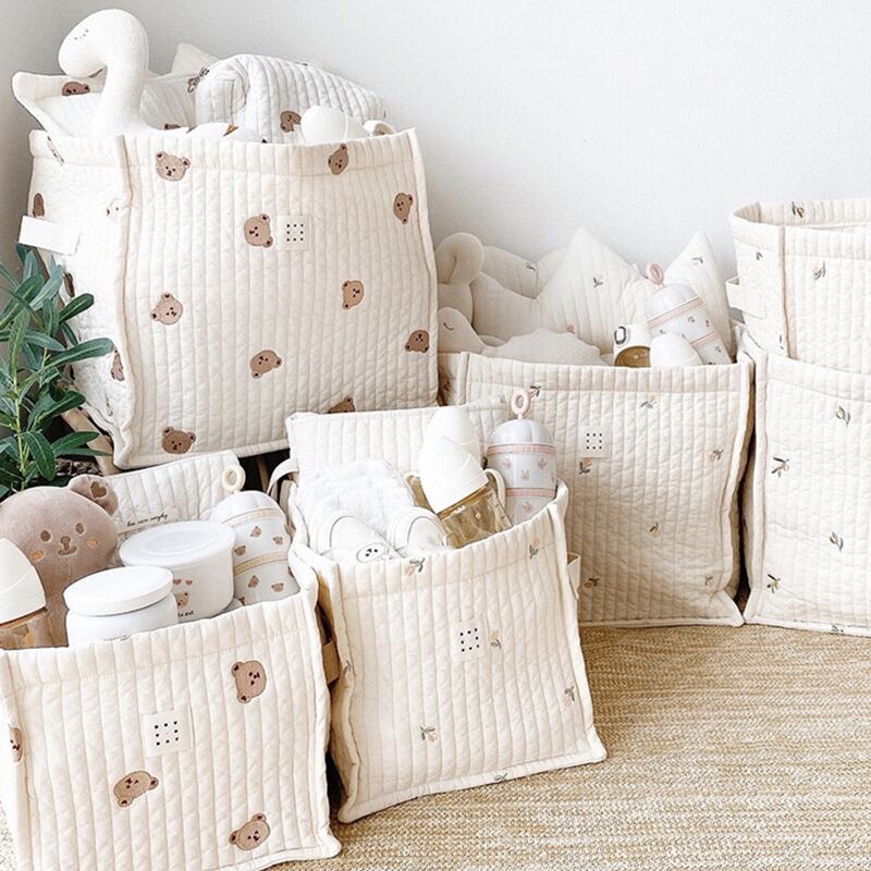 折りたたみ収納バッグ オムツバッグ おもちゃバッグ 赤ちゃんバッグ 収納バッグ 収納 おむつ入れ おもちゃ入れ くま 刺繍 花 花柄 綿 コットン ギフト プレゼント 出産祝い かわいい 人気 新作 ファッション おしゃれ chuzakka0064 chuchubebe | CHUCHUBEBE