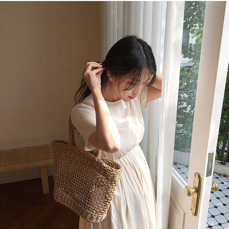 麦わらバッグ かごバッグ カゴバッグ ミニトート バッグ 小物 ブランド雑貨 雑材 レディースバッグ トートバッグ型 ナチュラル アイボリー ブラウン くったり 柔らかい レディース 編み込み タッセル 雑材 春夏 夏バッグ サマーバッグ chuzakka0060 chuchubebe | CHUCHUBEBE