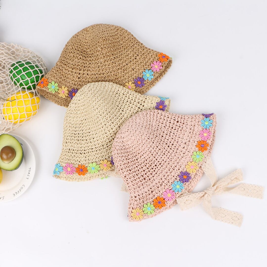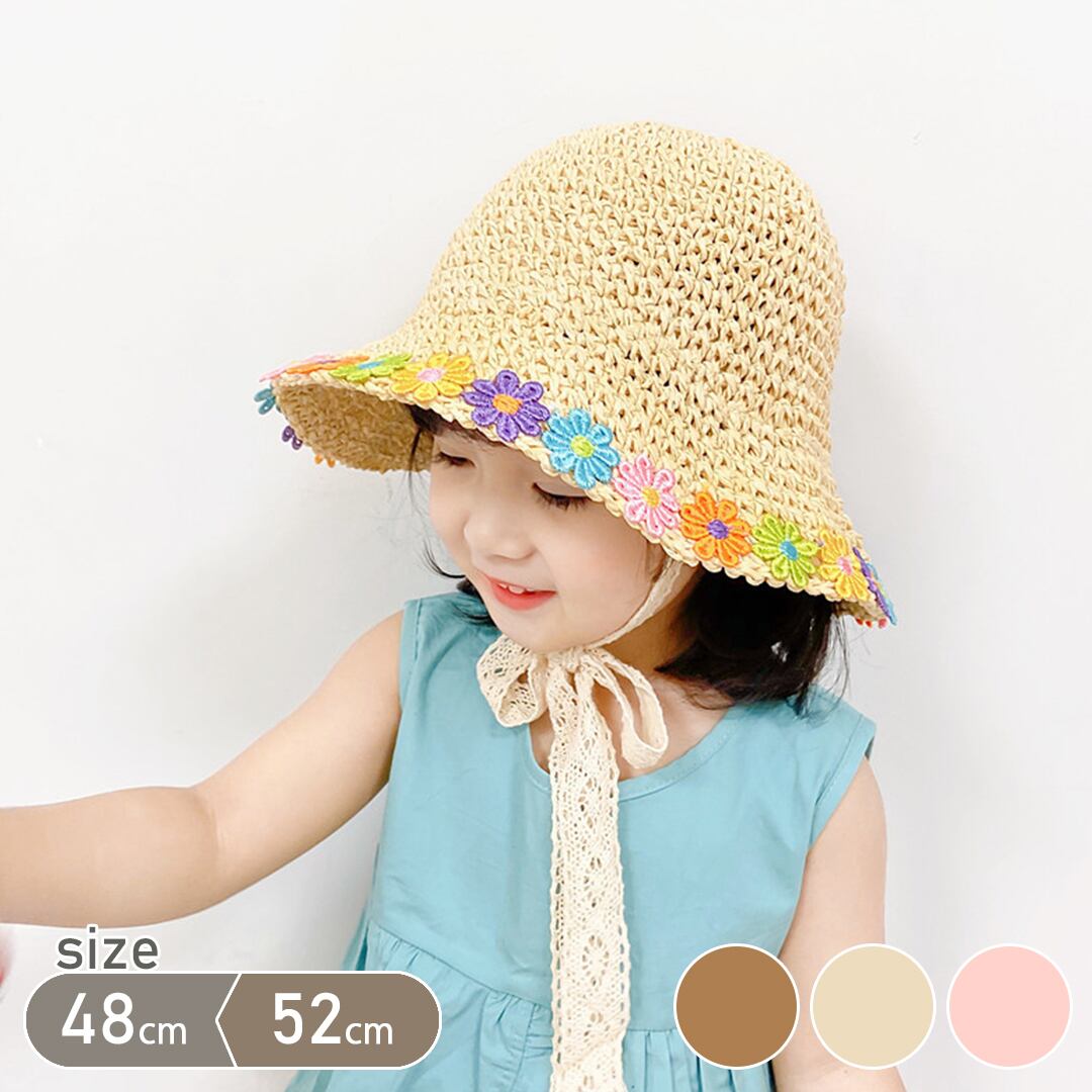 日焼け対策にも!花ペーパーハット 麦わら帽子 ひも付き わら帽子 ナチュラルなコーディができる ナチュラル 夏のお出かけ 子供帽子 春 夏 秋 48~52cm chuchubebe chuzakka0030 | CHUCHUBEBE