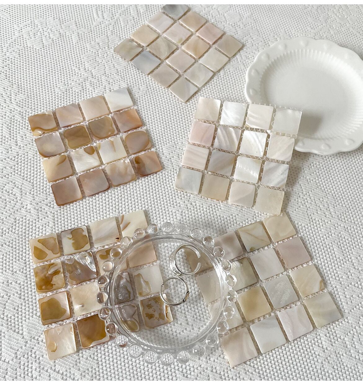 パールシェルを貼り合わせて作ったスクエアタイプのコースター。高級感ある素材で食卓にリゾート感をプラス パールシェルのコースター パルシェ スクエア 四角 スクエア 四角いコースター シェル小物 貝殻 テーブルウェア モダン おしゃれ chuzakka0057 CHUCHUBEBE | CHUCHUBEBE