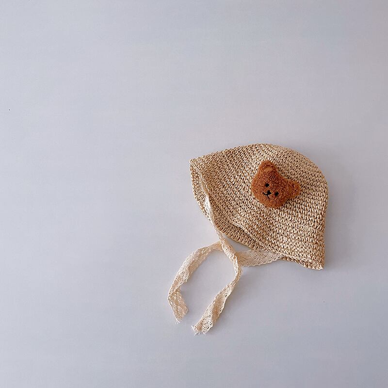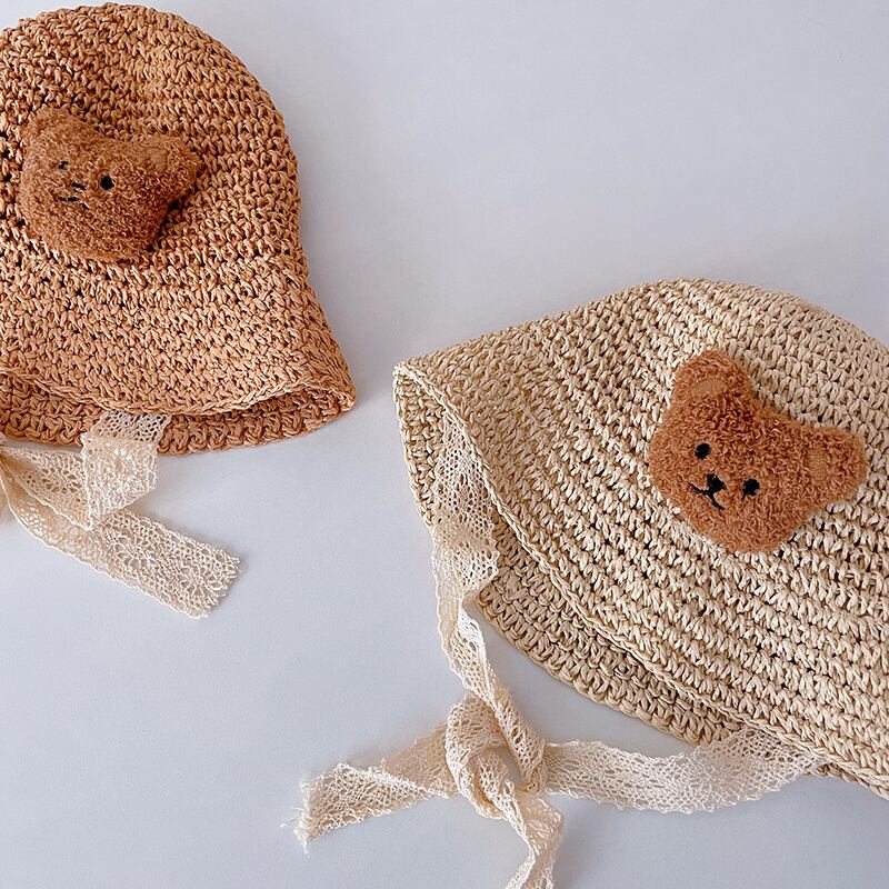 メール便送料無料!レース紐付きクマ麦わら帽子 レースペーパーハット 麦わら帽子 紐付き クマ クマワッペン 麦わら帽子 ストローハット ペーパーハット 日よけ 日焼け対策 紫外線対策 夏用 ペーパーハット 子供帽子 子供 帽子 ベビー帽子 赤ちゃん お出かけ リボン レース 48cm 52cm chuchubebe chuzakka0098 | CHUCHUBEBE