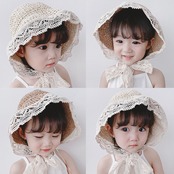 レースペーパーハット 麦わら帽子 紐付き ナチュラルなコーディができる 日よけ 日焼け対策 紫外線対策 夏用 ペーパーハット 子供帽子 子供 帽子 ベビー帽子 赤ちゃん お出かけ リボン レース 48cm chuchubebe chuzakka0116 | CHUCHUBEBE
