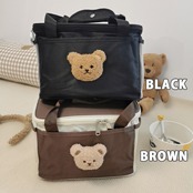 ブラックとコーヒーカラーのオールマッチバック、可愛いぬいぐるみのクマ人形が韓国的な感じが漂う、ピクニックに行くときにフルーツドリンクなどを詰めることができてとても実用的です!