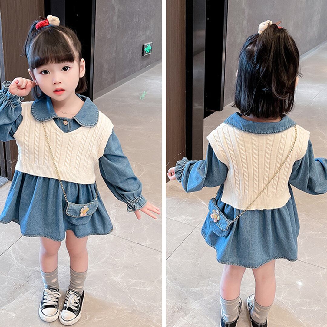 キッズコーデ デニム ワンピース ニットベスト セットアップ フォーマル 女の子 おしゃれ ガールズ ファッション ジュニア 春 夏 秋 幼稚園 韓国子供服 韓国子ども服 春 アウター 90cm 100cm 110cm 120cm 130cm chuchubebe chuset0011 | CHUCHUBEBE
