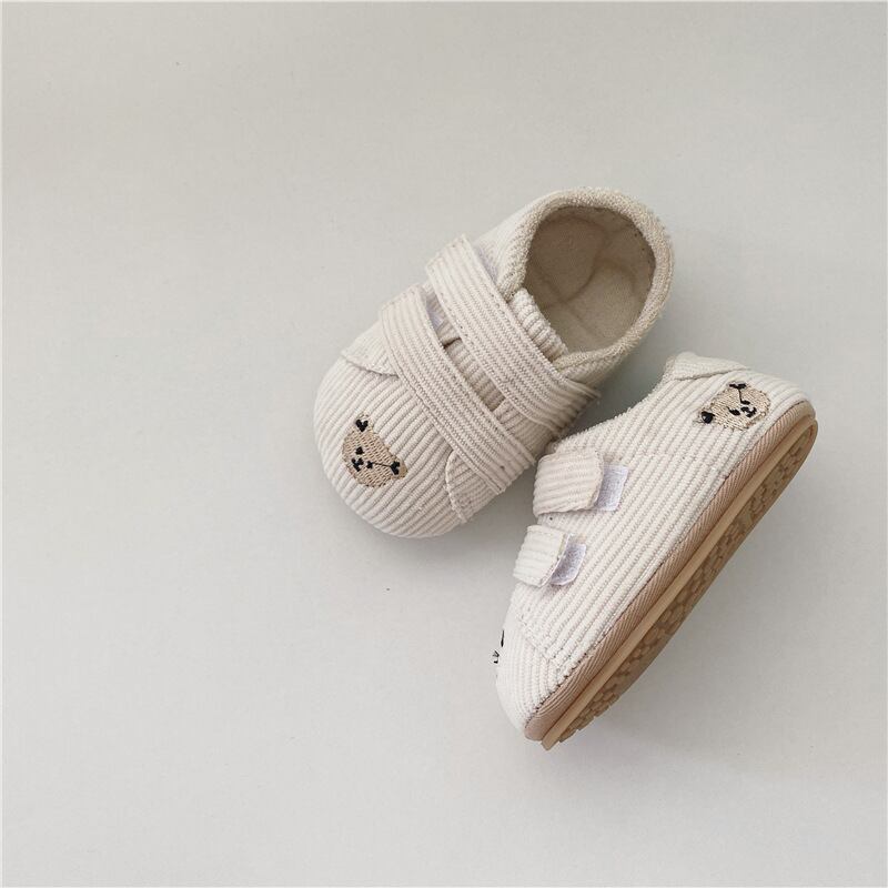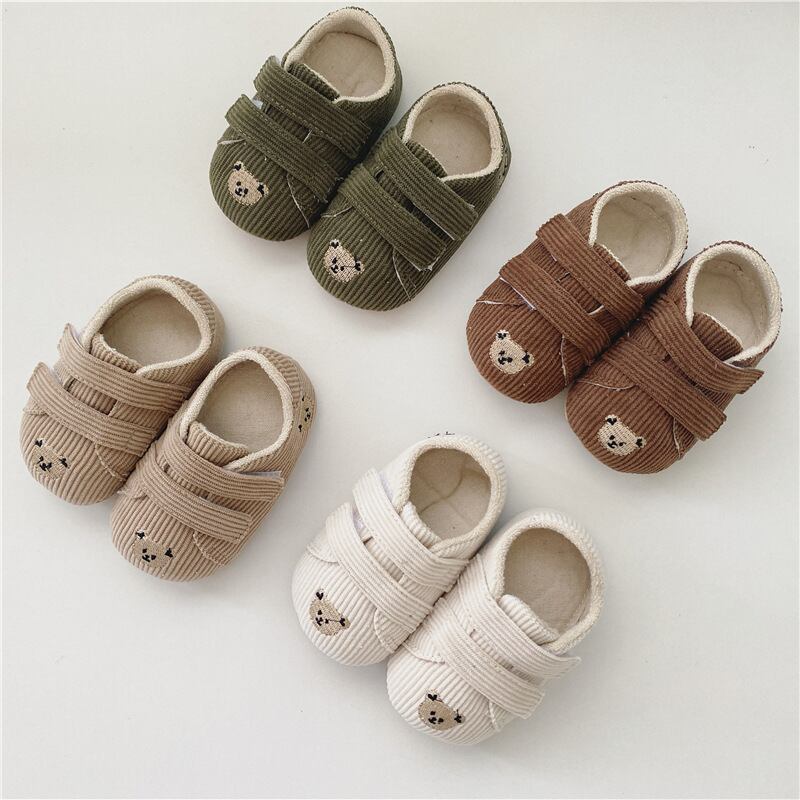 赤ちゃんもママも安心!ファーストシューズ シンプルワンカラーの コーデュロイのスニーカーは可愛いくまさんのお顔付き 男の子 女の子 シューズ おしゃれ かわいい ベビー 保育園 幼稚園 通園通学靴下 子供服 春夏秋冬 クリスマス chuzakka0164 | CHUCHUBEBE