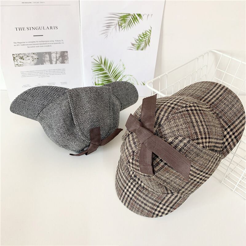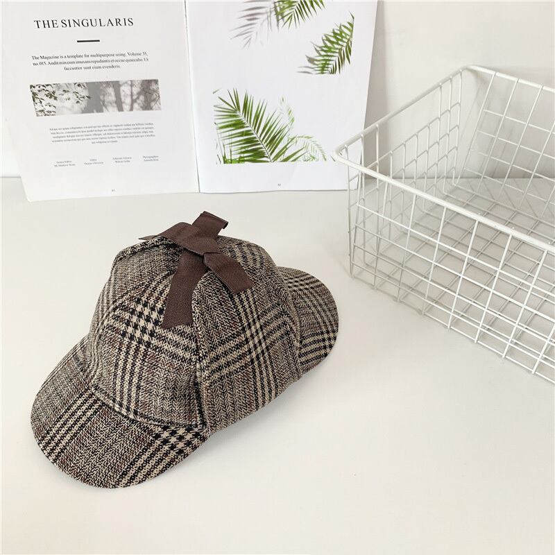 クラシック 秋冬 探偵帽 チェック柄 コスプレ ツイード イヤーフラップ 帽子 グレー チャコール チェック チャコールチェック 約50-54cm サイズ調節不可能 chuchubebe chuzakka0167 | CHUCHUBEBE