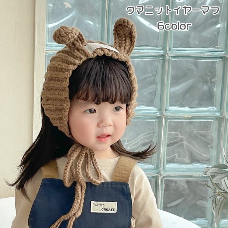 ニットイヤーマフ ニット耳あて ワッペン クマ 子供用 暖かいイヤーマフ くま ウール ギフト プレゼント 出産祝い かわいい 人気 新作 ファッション chuzakka0177 chuchubebe 2-8歳 | CHUCHUBEBE