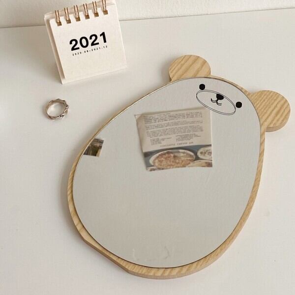 カワイイクマちゃんウッドメイクアップミラー スタンドミラー 鏡 ウッド鏡 卓上ミラー 折立ミラー かがみ 角度調整付 メイク用 折りたたみ chuzakka0204 chuchubebe | CHUCHUBEBE