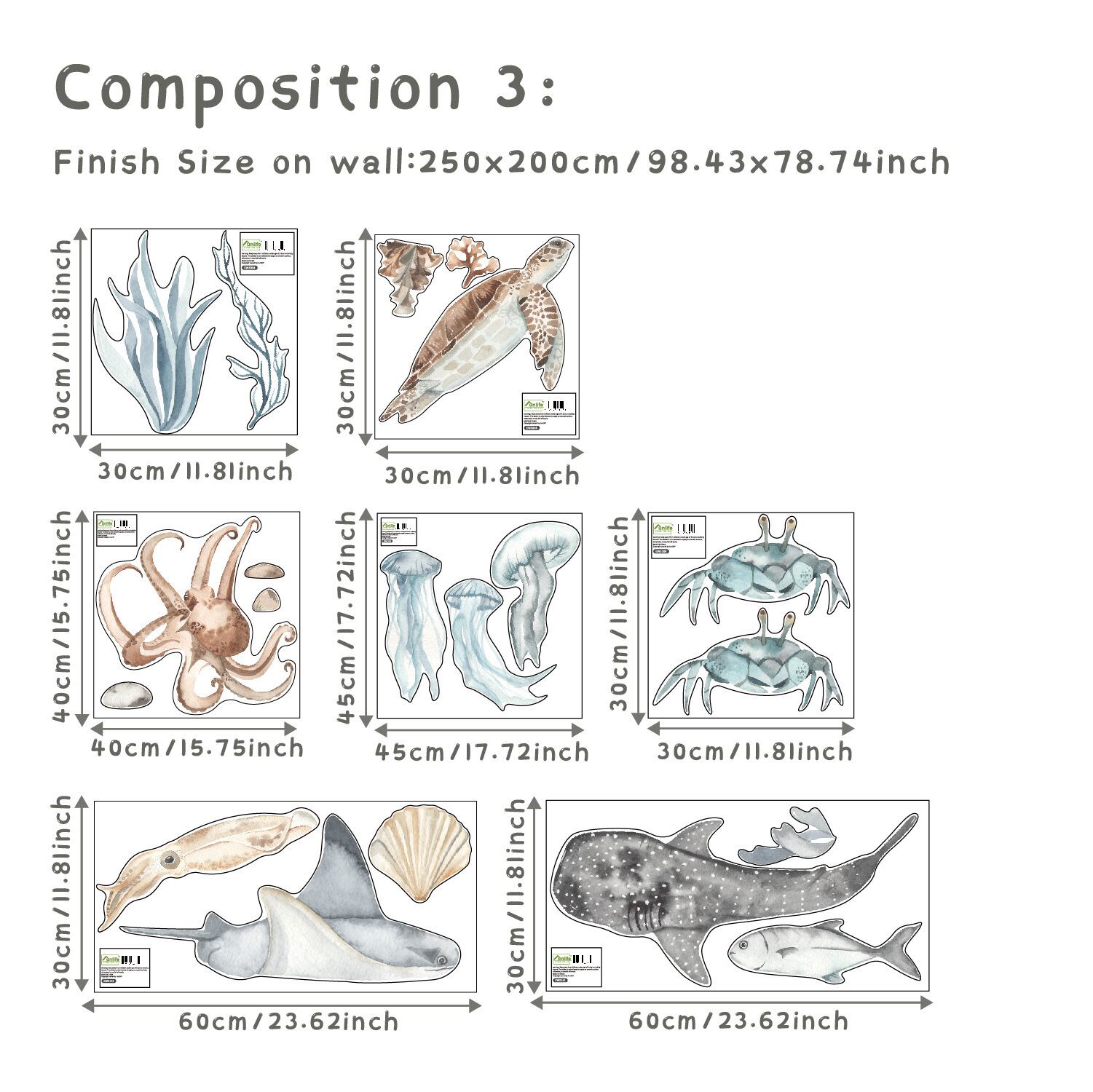 海の動物 クジラ サメ タコ カニ 魚 クラゲ 大型ウォールステッカー 北欧 スタイル 子供 北欧 子供部屋 トイレ 壁紙 はがせる 壁シール シールタイプ ウォールステッカー 壁紙シール リメイクシート 7枚セット1セット ウォール chuchubebe chuzakka0225-015 | CHUCHUBEBE