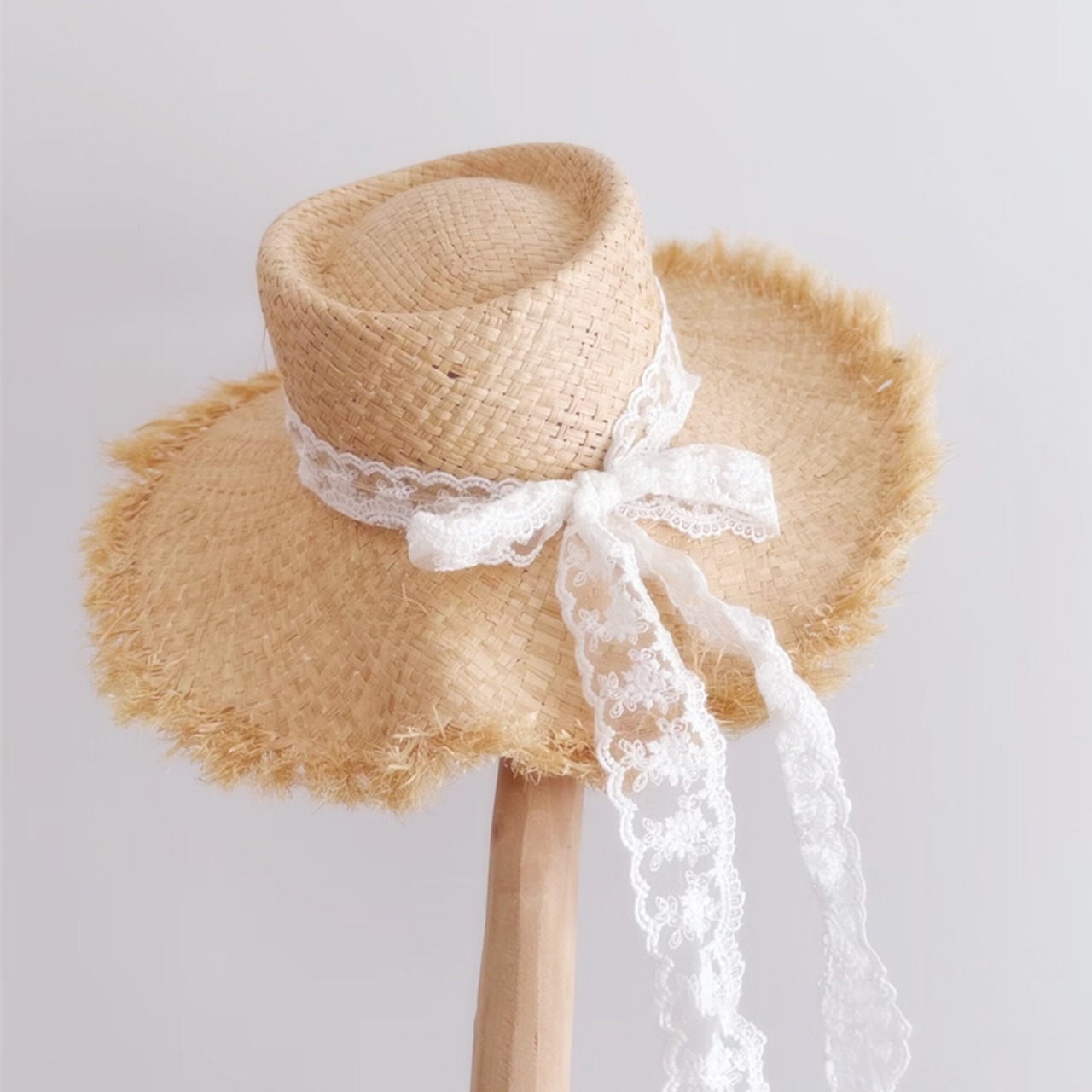 子供のファッション凹面形状レース麦わら帽子夏の女の子のビーチでの休暇を着用してサンシェードと日焼け止めの大きなつばの帽子 50cm chuchubebe chuzakka0247 | CHUCHUBEBE
